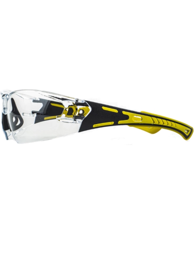 Панорамные линзы с двухсторонним покрытием от запотевания и царапин. Два уровня защиты: фронтальный, боковой. Дужки двухцветные из тэрмоэластопласта (ТЭП), на переносице и заушниках мягкий материал.